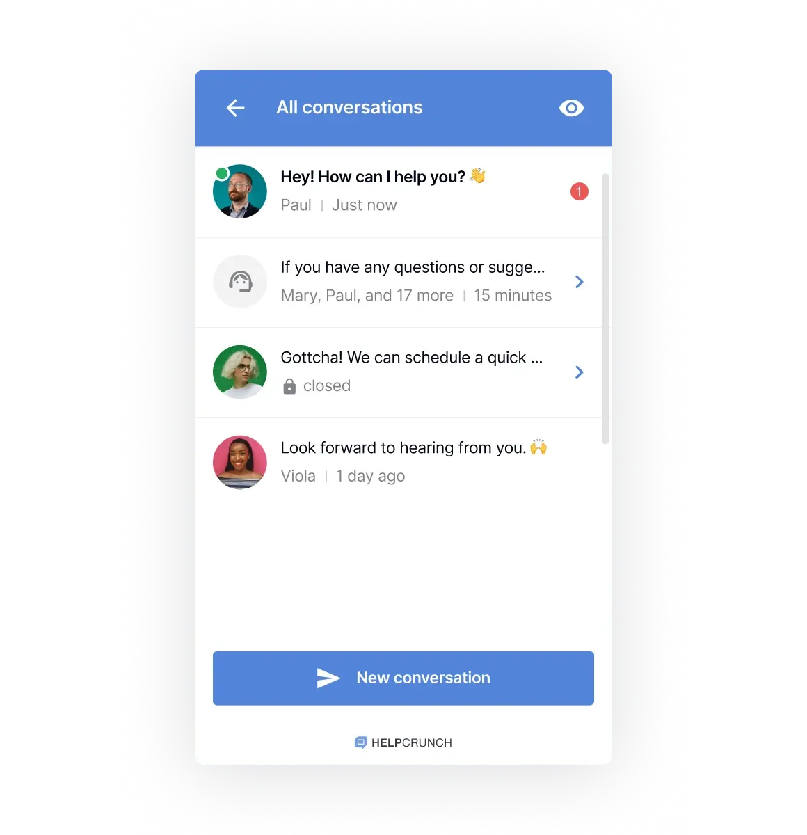 User-friendly admin panel, great price, very helpful support, best-written knowledge base. The best alternative to Intercom. Lots of options. I am not even sure if I need a chatbot anymore, as there are enough options for using messages and popups. Easy to use for anyone. My newly hired inexperienced customer support agent just turned it on and understood all the features immediately. I have been using and testing numerous apps so far, and Helpcrunch is truly a winner.