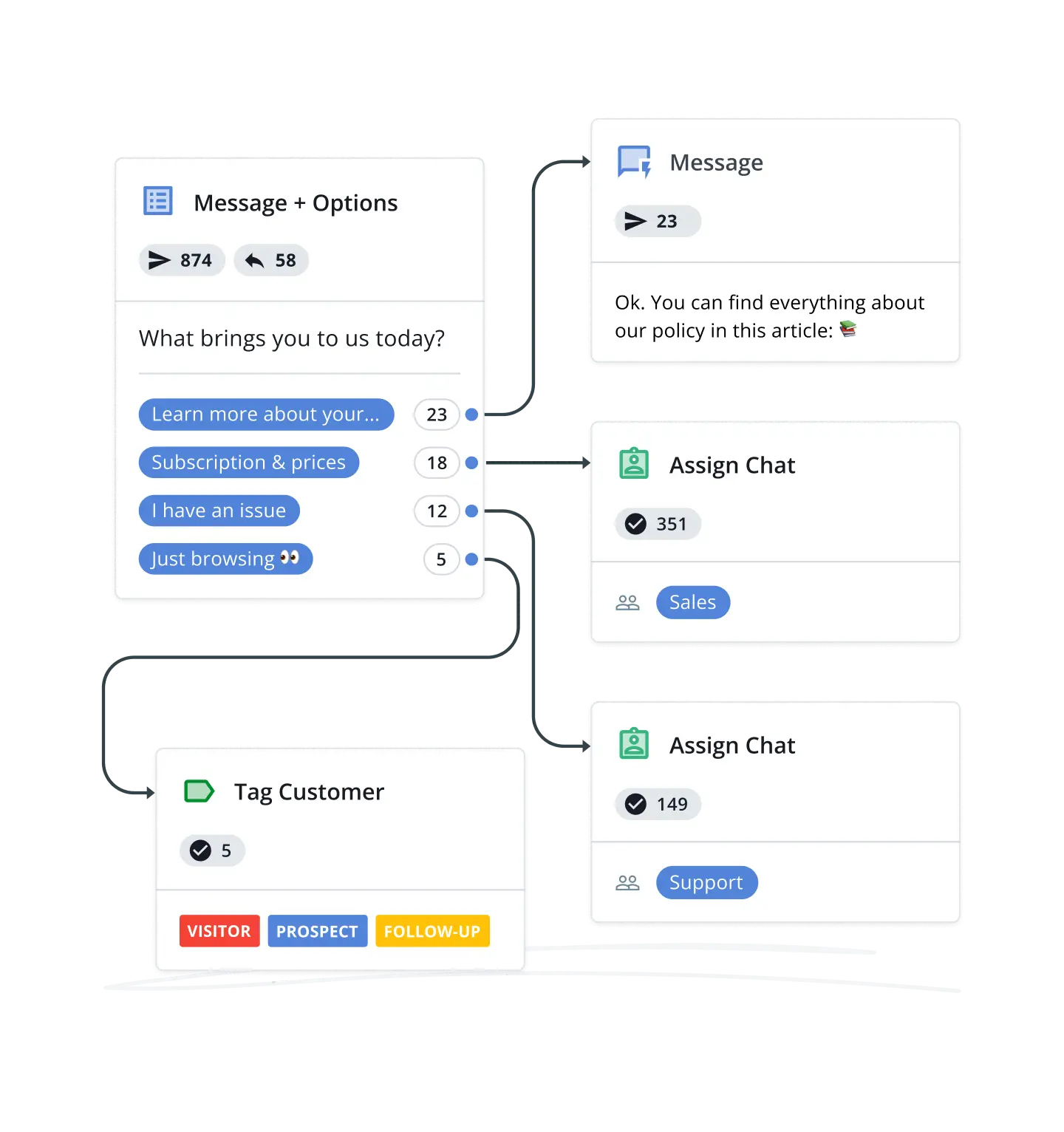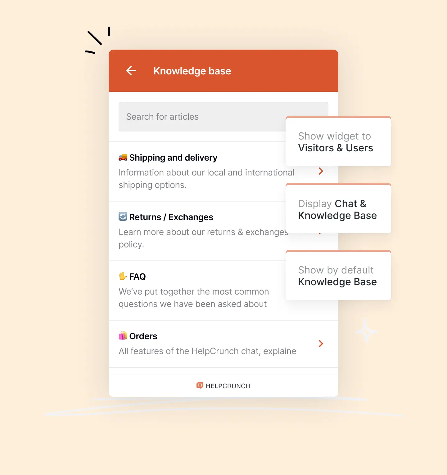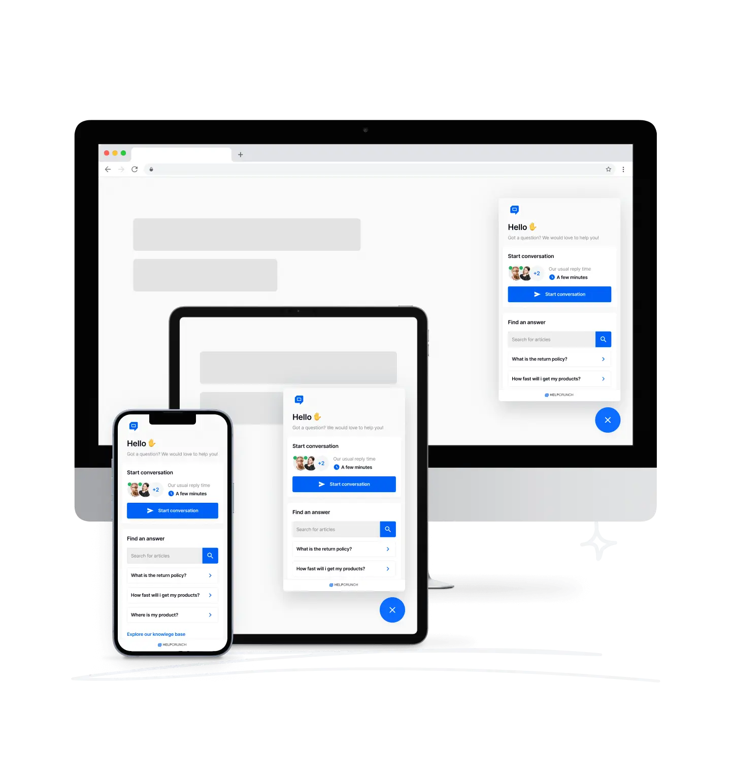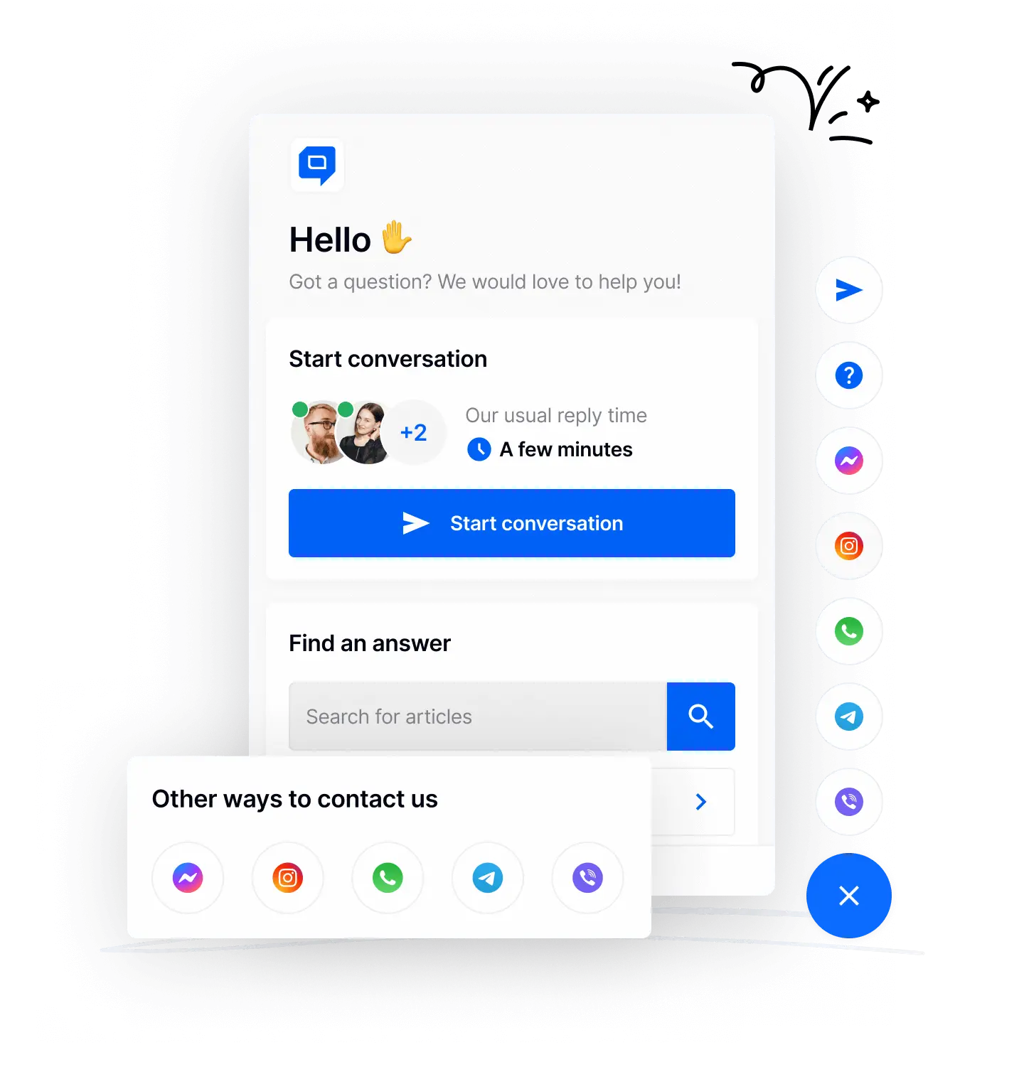 Install a multichannel chat on your website to provide instant help via live chat or messengers. A built-in knowledge base will provide instant answers to those who prefer self-service. And you can also manage emails from the same inbox.