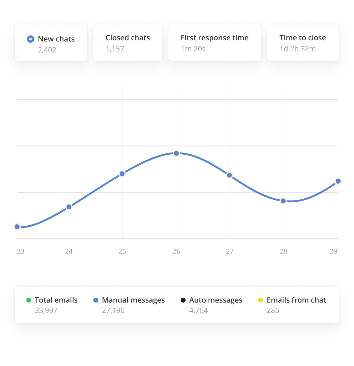 Communicate with your customers via email or chat. Unite your corporate messengers and social media accounts to provide an omnichannel experience.